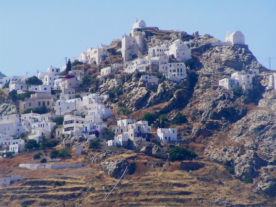 In diesem Sinne ging's dann auch weiter. Im Lee der Insel Sifnos nach Osten, dann ein Schlag nach Nordwest. Desto weiter wir nach Norden kamen, desto geringer wurde die Wellenhöhe, da sich die Anlaufstrecke für diese reduziert. Mittlerweise war nun ja auch die ganze Crew hinreichend seefest. So erreichten wir Den Hafen von Sikinos mit der an einen "Herr der Ringe"-Film erinnernden Chora. Obwohl der Kai schon voll war und wir wieder mal auf Reede ankern mussten, konnten wird dann doch das volle Programm durchziehen. Stadtbesichtigung , Skipper's Dinner am Strand unter Pinien, Auftanken!.