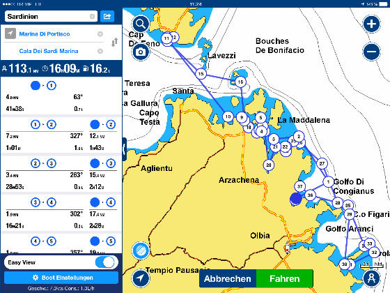 Ankunft um 12:30 in Olbia (meine bisher schlimmste Flugzeuglandung) und Transfer nach Portisco (Costa Smeralda); einkaufen, Boot übernehmen, Bier trinken……